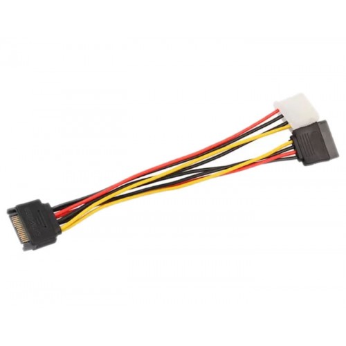 Cablu intern adaptor/multiplicator MIXT pentru sursa, SATA 15 pini tata la SATA 15pin mama si Molex (IDE, cablul de alimentare cu 4 pini pentru hard disk/dvd).