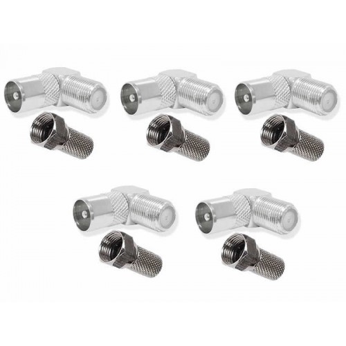 Pachetul contine 5 conectori tata 90 grade si 5 mufe de legatura.