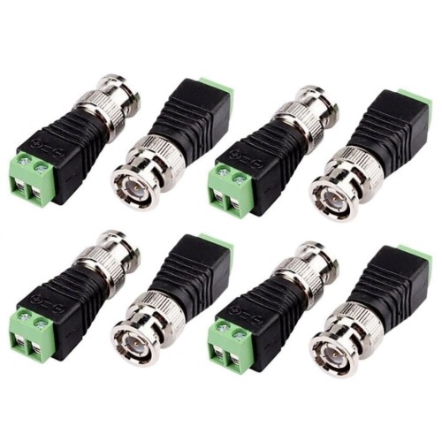 SET 8 conectori / Mufe BNC tata cu 2 borne, compatibil cu orice tip de cablu (coaxial, retea, electric), pentru camere de supraveghere video