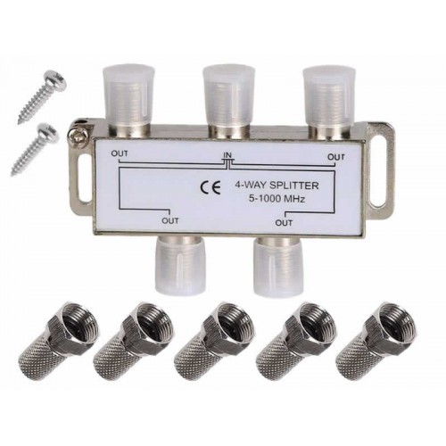 Acest spliter este ideal pentru a multiplica semnalul de la canal sau antenă tv satelit, la 4 televizoare simultan.